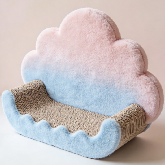 Gradient Cloud Sofa Cat Scratcher - Pink & Blue Plush Scratching Bed with Corrugated Cardboard Base